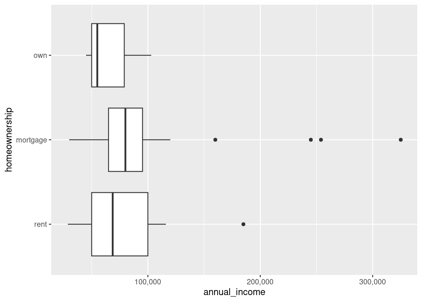 We can draw a scatterplot of two variables of the loan50 data as follows.